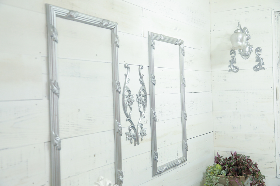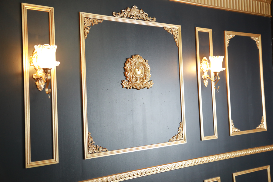 2つの雰囲気を持つ1Fには、革張りソファやゴールドミラー、シルバーフレームやモチーフなど様々なアイテムが。 自然光が映えるゴシックロリータ風の白い空間は、高級ソファとシルバーフレームで映える空間に。 対照的な黒壁側はアンティークソファ、シャンデリアと組み合わせることで、シックでモダンな印象になります。